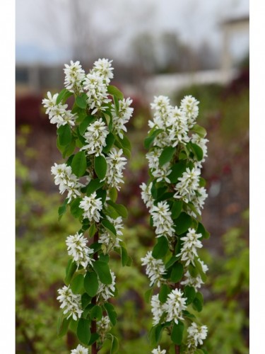 Arbusto di grandi dimensioni, rustico e vigoroso, supera i 3mt di altezza in pieno sviluppo. Le foglie verde scuro di forma ellittica con una dentatura regolare lungo il margine esterno, in autunno assumono una colorazione gialla intensa. Ad inizio maggio compaiono sulla pianta numerosi fiori bianchi di medie dimensioni che porteranno a numerosi grappoli di bacche color blu nero intenso, dal sapore dolce e succoso che si possono usare anche in cucina per confetture e dolci.